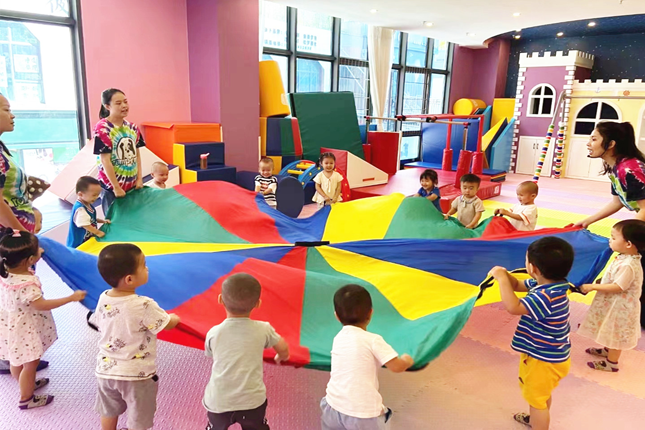 我們的中心由美國著名設(shè)計師精心設(shè)計,卡通式、情景化環(huán)境,可以在為不同月齡的寶寶帶來刺激的體驗的同時保證他們的安全。豐富多彩的軟包設(shè)計,使教具更加舒適和容易清潔。不論是只會爬的嬰兒、蹣跚學步的幼兒,還是學齡前兒童都可以在此玩耍。